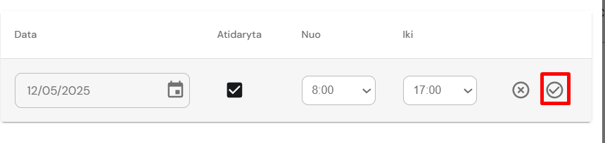 6. Pasirinkti datą (Galioja nuo*) nuo kada naujas darbo laikas yra aktualus