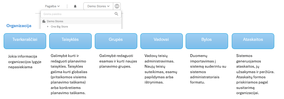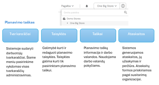 Organizacijos lygyje nėra galimybės peržiūrėti tvarkarašio. Būtina pasirinkti planavimo tašką.