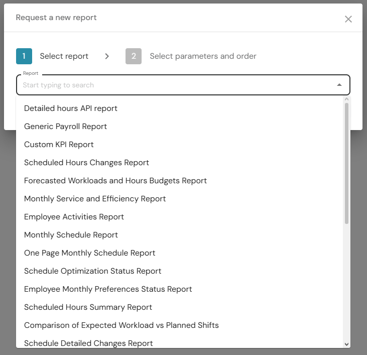 5. Complete report parameters.