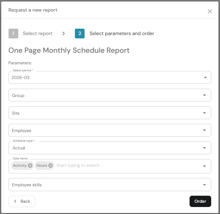 6. Click Order. Note that report generation may take up to several minutes (generation time depends on the data amount in the report).