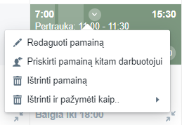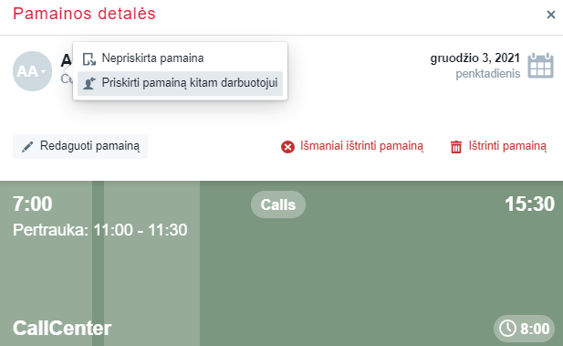 b) Click the employee initials and choose Assign the shift to another employee from the list
