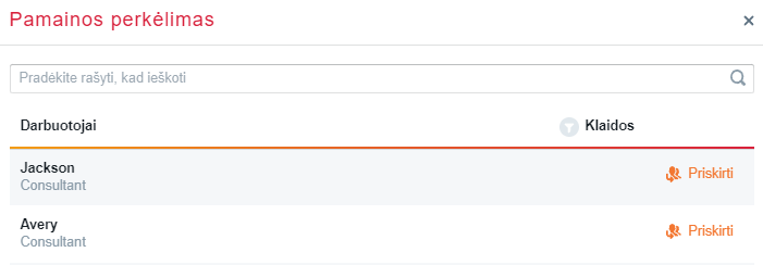 2. Click from the list the employee to whom the shift is to be transferred and click Assign (an employee or an error filter can be used). Having clicked error icon, the system will display the work schedule requirements that will be violated having assigned the shift to the employee.