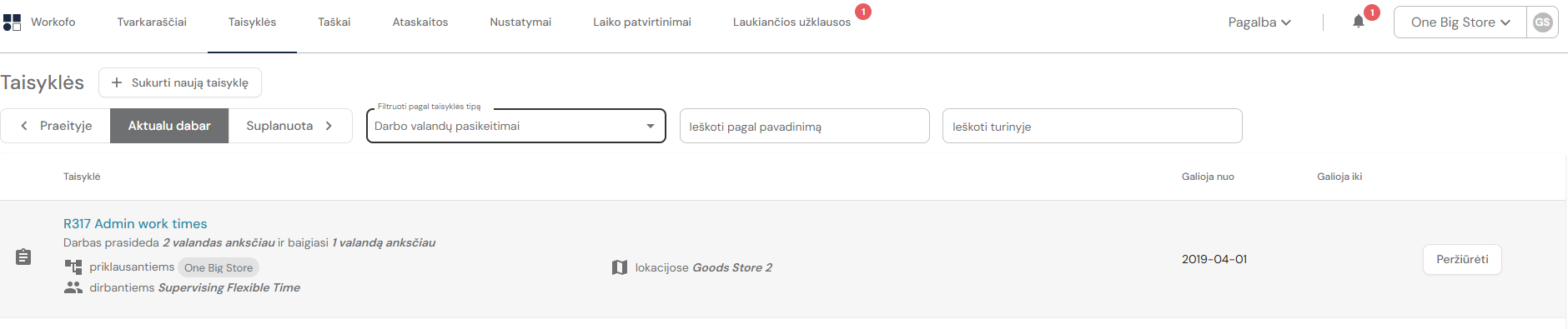 SVARBU: taisyklę Darbo valandų pasikeitimai gali redaguoti tik WORKOFO sistemos administratoriai. Taisyklė nustato kokios veiklos turi būti planuojamos padalinyje.