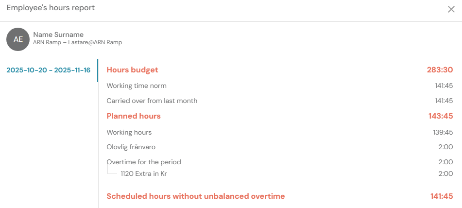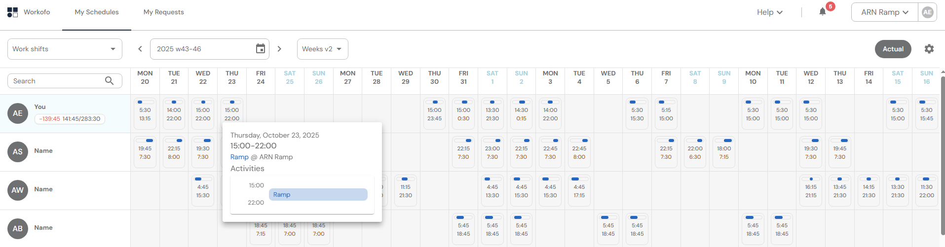- View the work schedules of colleagues working in the same team (this option can be disabled if necessary).