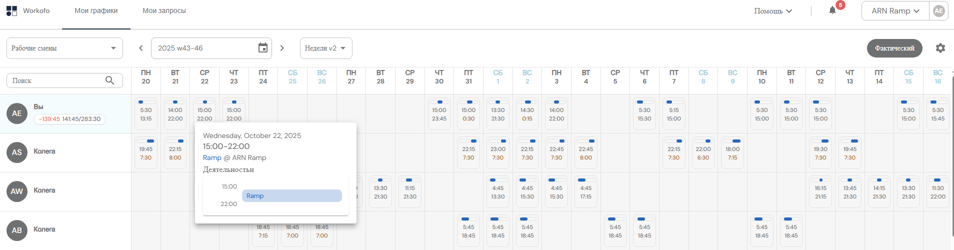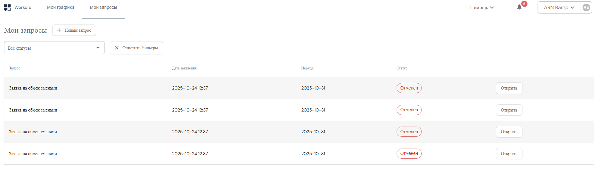 - Инициировать запрос на обмен сменами с коллегами, работающими в одной команде.