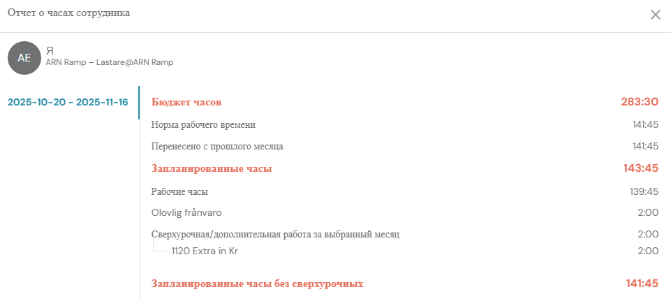 - Проверить подробную информацию о запланированных часах для выбранного периода.