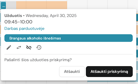 - Atšaukti užduoties priskirymą: