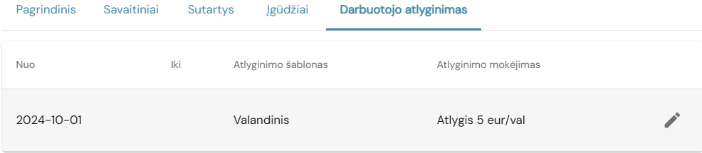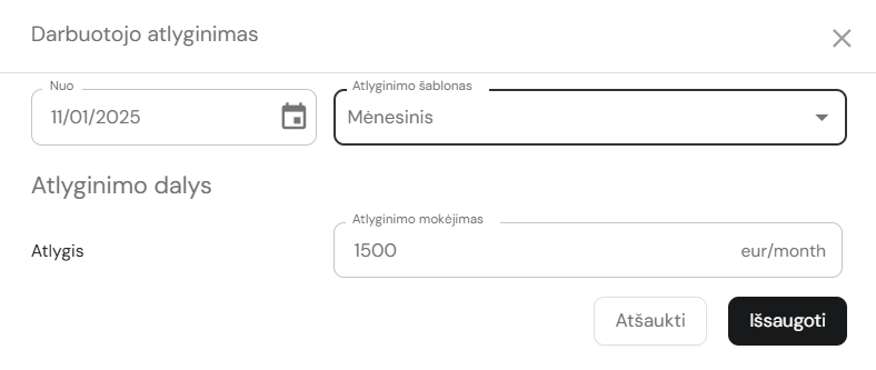 Kiekvienam darbuotojui sistemoje galima nustatyti atlyginimą.